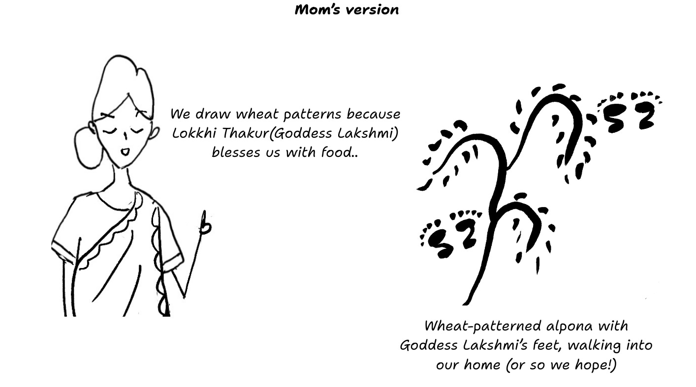 I have this fond memory of Papa making alpona on the floor during Lakshmi Puja.