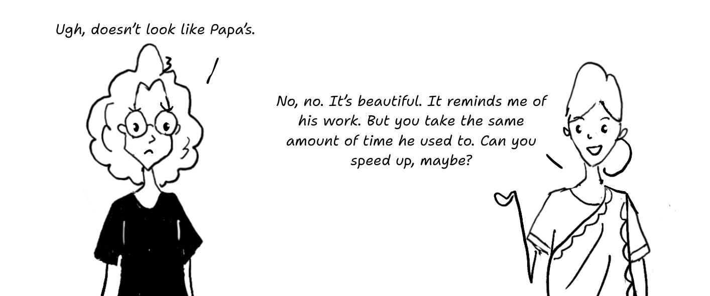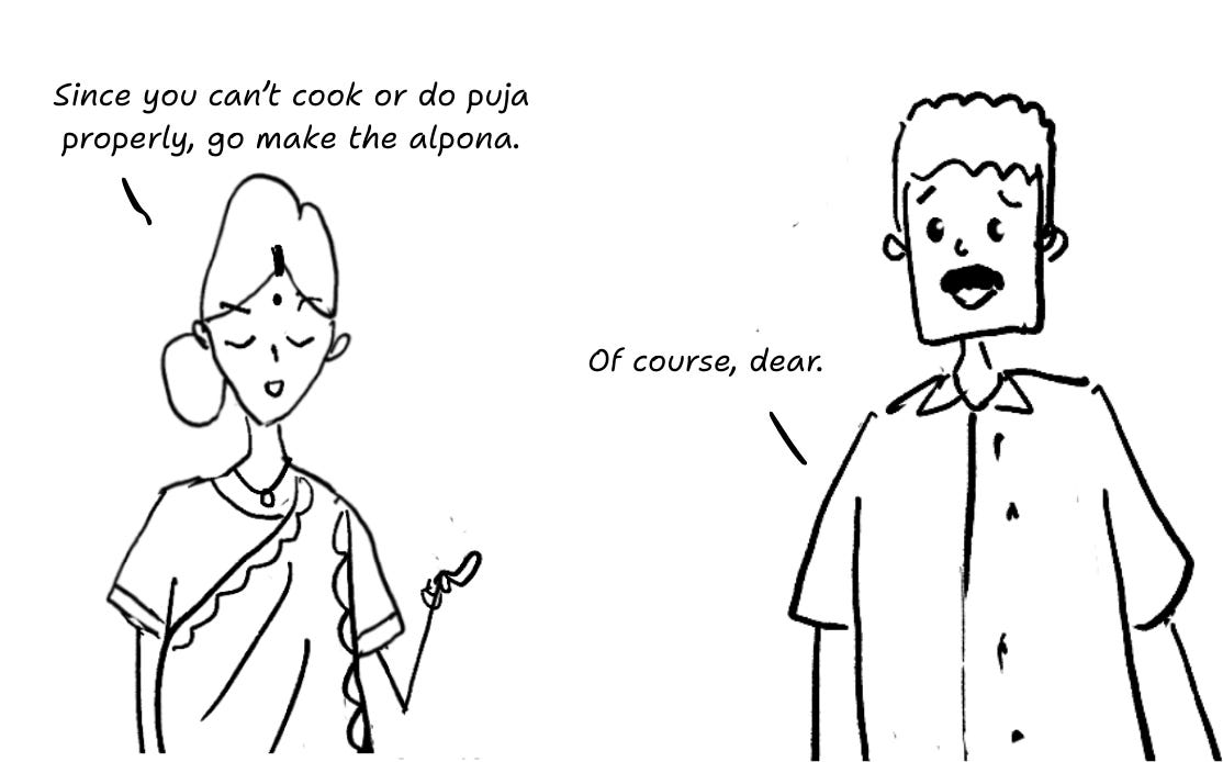 Like maa’s handmade sweets that taste like home. Or the joy of finding a shared memory with someone across a border. Or sitting with papa as he made alponas with his fingers, while we just watched, mesmerised. There’s no code that can recreate that feeling.
