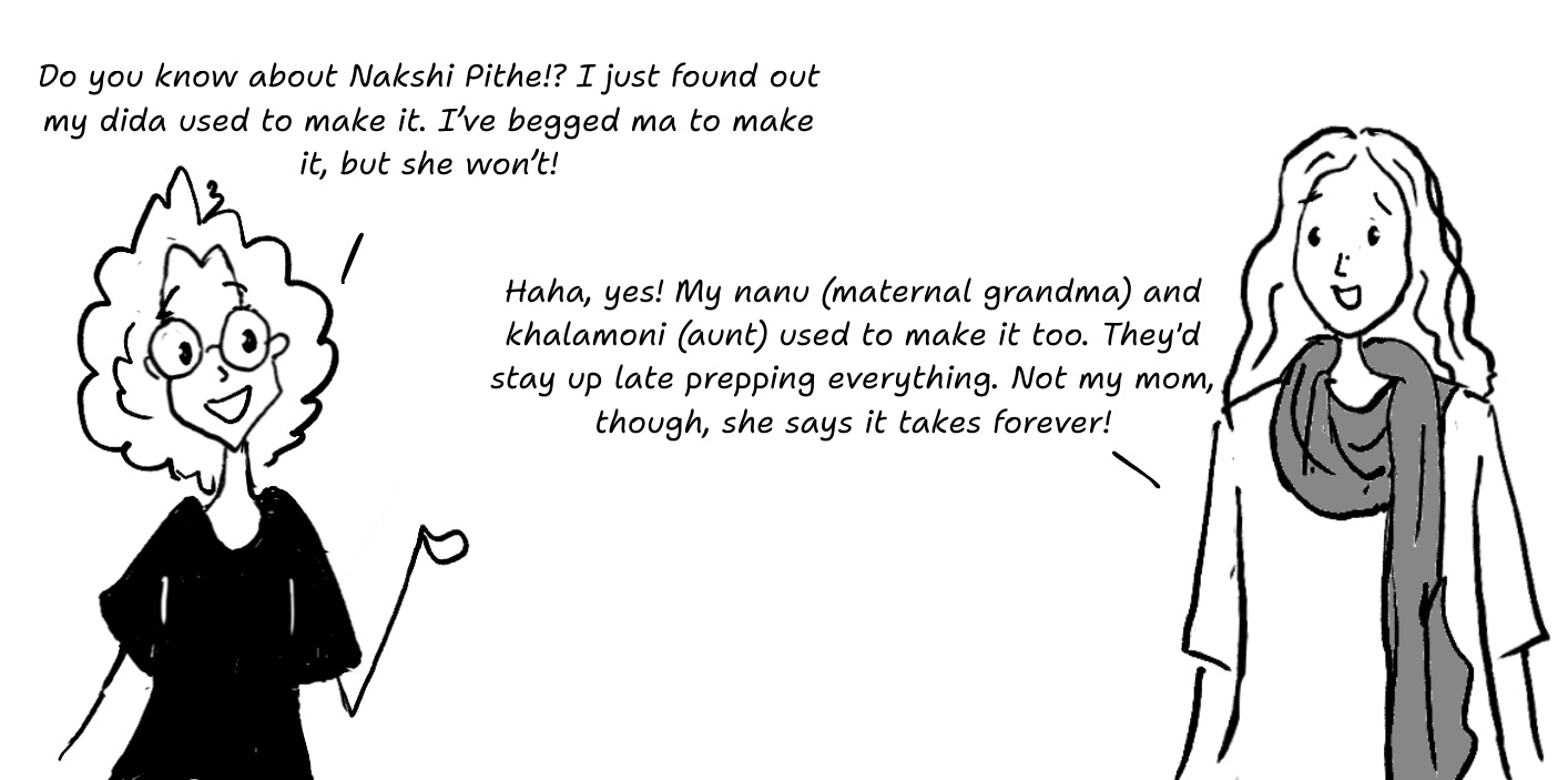 And since pithe-puli is a big part of Bangladeshi heritage, I often end up chatting about it with my friend from across the border, Nishat.