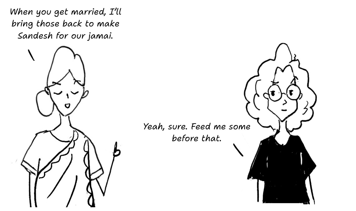 Because just like pithe, Sandesh is often made when the son-in-law visits or after a wedding, to honour the jamai.